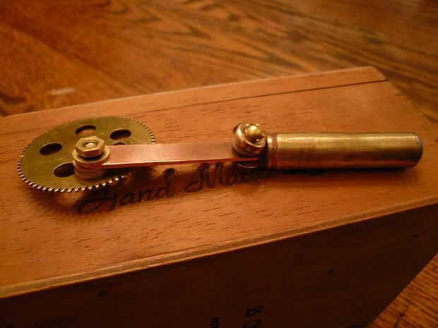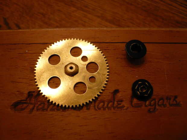 No necesariamente tienes que usar un engranaje, pero cualquier plana, rígida, redonda pieza de cobre, níquel o latón funcionará. Perfore un agujero en el centro y, usando la tuerca que sostiene las manos de la cara del reloj a la entrada, la soldadura en el centro de la placa de enclaje.
