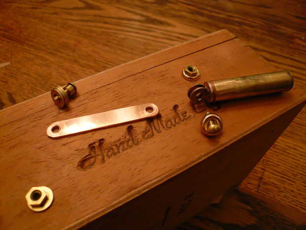 Usted puede perforar un par de orificios de prueba de la placa (dos pueden verse en la primera foto abajo) para ver cual funciona mejor. Con 2 tuercas y los pernos pequeños, conecta el pistón a la biela y la biela a la placa de enclaje. Utilice arandelas para subir la varilla de conexión por encima del nivel de la tuerca soldada para asegurar la separación. Tornillo de la placa/engranaje al post que sale de la tapa de la caja de cigarro hasta que esté firme. Sostener la cámara 416 carcasa e inserte el pistón. Aquí es donde entra el trabajo de adivinar: Utilice la tecla para el acero del resorte del viento ligeramente, a continuación, mueva la cámara 416 alrededor para encontrar un lugar donde el bombas de émbolo constantemente hacia adelante y hacia atrás con la menor resistencia. Esto va a determinar la mejor colocación para el soporte de montaje.