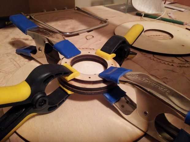 Para girar el centro de la tapa, necesita un mango. Decidí cortar un círculo ligeramente más grande que la parte giratoria y pegan los 2. El hecho de que el mango es más grande impide que el anillo central son empujados a través de la tapa.