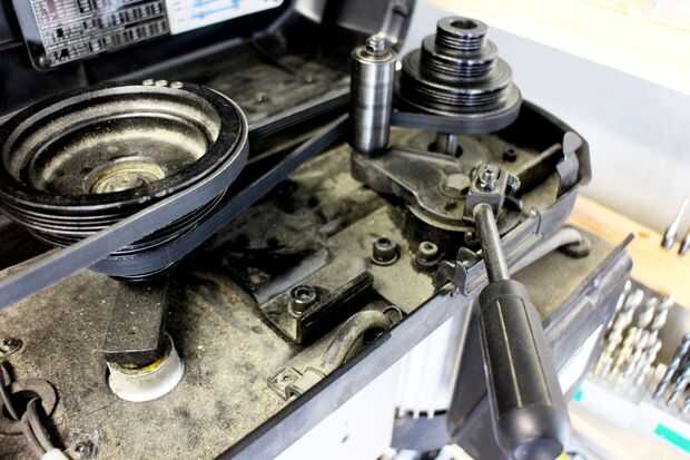 Auto ajuste de tensión: La polea tensora se une a una especie de resorte o el peso por lo que constantemente hay una fuerza que empuja la polea con la correa.