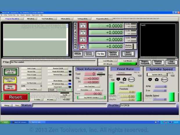 - Cuando esto sucede te entonces pulse Re Pág para levantar el eje de la placa PCB. Desea encontrar una bonita zona en el tablero donde desea realizar el grabado. El programa de autoleveller comienza en lo que se lee como punto (0,0) por lo que tienes que elegir un buen lugar para empezar a grabado y luego cero el eje X, Y y Z. Para ello, haga clic en la X de cero, Y cero y cero Z.