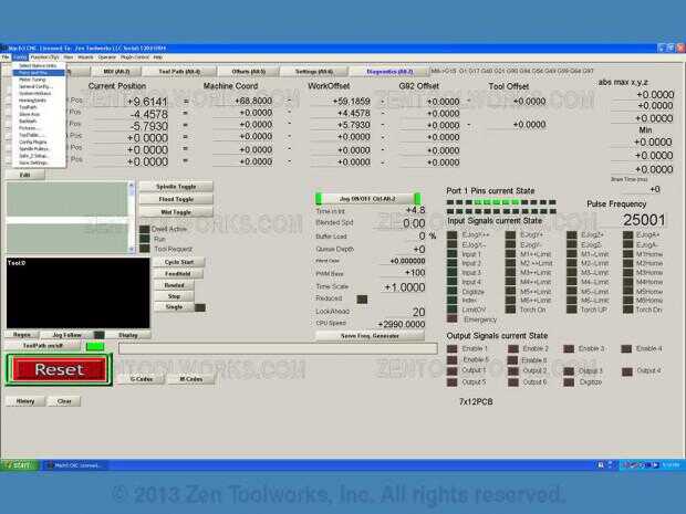 - Ahora que tenemos nuestro programa Mach3 entonces nos podemos sondeo la Junta utilizando nuestro código de G de PCB autonivelado. En primer lugar debemos asegurarnos de que nuestra máquina está conectada a nuestro ordenador.