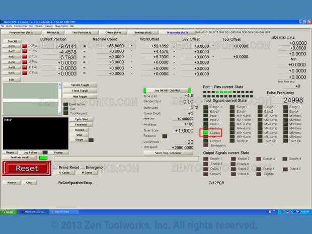 - Lo debemos ver en la pantalla de diagnóstico cuando nos toque los dos cables juntos es la caja de digitalización enciende para arriba. Esto demostrará que nuestra sonda se ve realmente por el software de Mach3.
