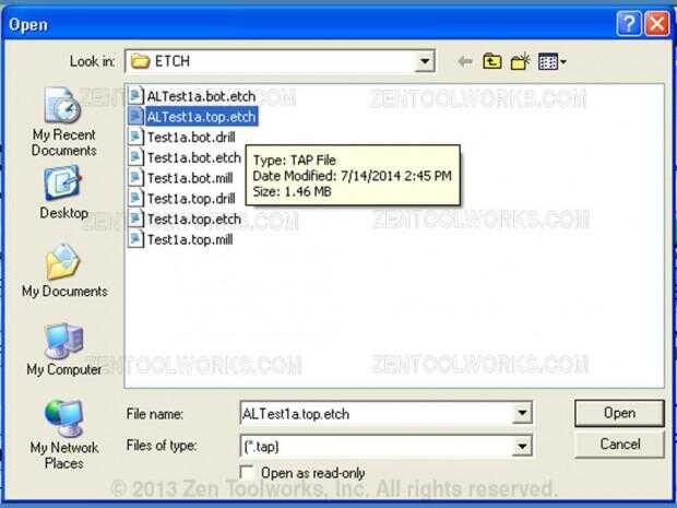 • Luego nos vamos y seleccionamos nuestro archivo nivelado automático. El archivo de autonivelado comenzará con un en su nombre. En este caso mío era AlTest1a.top.etch.