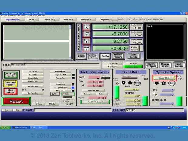 • Ahora que nuestro huso el interruptor, te darás cuenta que el motor no está funcionando. Puede arrancar el motor para comprobar la conexión haciendo clic en "Huso CW". Esto se convertirá en el eje desde el software de Mach3