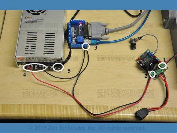 3. Negativo de la fuente de alimentación al relé interno del controlador Mach3 motor, luego al puerto negativo del PWM.