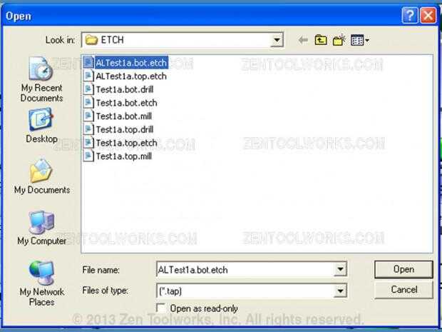 • Ahora que nuestro tablero se perfora hacia fuera podemos dejar la broca en para una última cosa. Tenemos que hacer un agujero en la X: 0 y Y: 0 marca. Puede hacer esto haciendo clic en el botón de inicio del eje y lentamente golpeando la tecla PgDwn para crear un pequeño agujero aunque la Junta. Vamos a utilizar esto para la X: 0 y Y: 0 parte del otro lado. Como el autonivelado. archivo bot.etch.tap se refleja en el eje X.