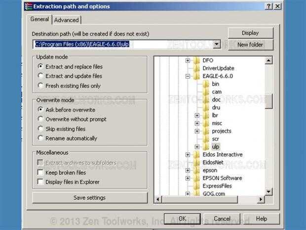 • Ahora para descomprimir es necesario descomprimir la carpeta en el directorio adecuado de águila reconocer su ubicación. Primero descomprimes la carpeta C:\Program Files (x86)\EAGLE-6.6.0\ulp