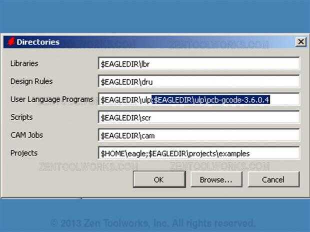 • Ahora tenemos que insertar una línea en los programas de lenguaje de usuario que lee; $EAGLEDIR\ulp\pcb-gcode-3.6.0.4 justo después de la línea anterior. ·