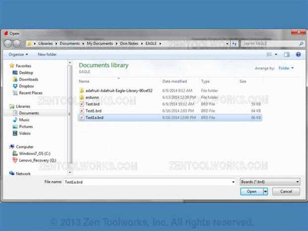 • Desplácese hasta el circuito deseado y haga clic en abrir. En este caso sería mi propia tabla de Test1a.