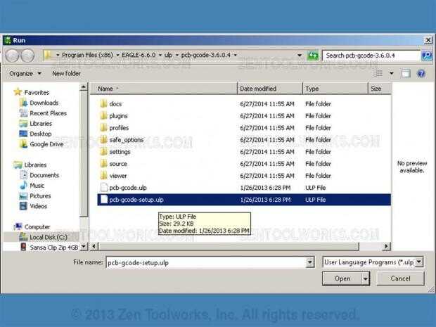• Ahora queremos abrir la carpeta y haga clic en archivo de pcb-gcode-setup.ulp. ·