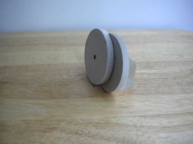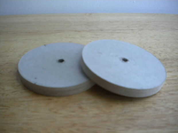 Corte seis teniendo placas, perfore los agujeros del eje y luego moler hasta un diámetro de 3". Unir tres placas, asegurando que el eje agujeros línea. Repita el procedimiento con los tres discos restantes.