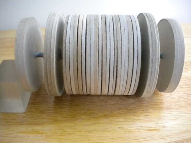 Se alinearon los discos de 20 rotor, 2 placas de extremo interiores y 2 placas de retención del cojinete en el eje para mostrar piezas trabajadas a máquina cómo debería ser en este momento. Las dos placas exteriores fueron omitidas por error de la foto. : > O
