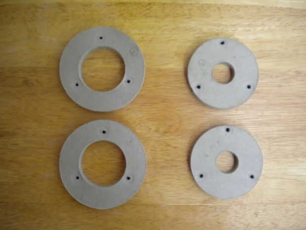 Taladro centrado, 1-7/8" agujero de ventilación a través del montaje de la placa de extremo interno y externo que permite aire gastado para salir de la turbina. A continuación perfore un agujero centrado a través de ambas placas de retención iguales que el O.D. de orientarte. Tamaño exacto del agujero depende de fabricante del cojinete.