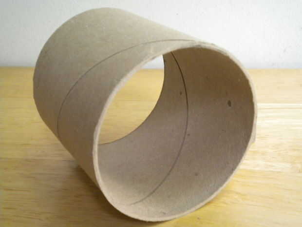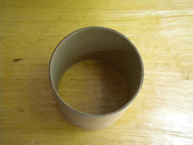 La cáscara o cubierta de la turbina se hace de uno de los jumbo, rollos de papel higiénico usado en baños públicos de restrauants de cadena y puntos de venta de caja grande. Asegúrese de que los bordes no están incrustados. Como alternativa, puede usar un cartón postal tubo con las mismas dimensiones (3-1/2" L x 3 1/2" ID x 1/16" de espesor).