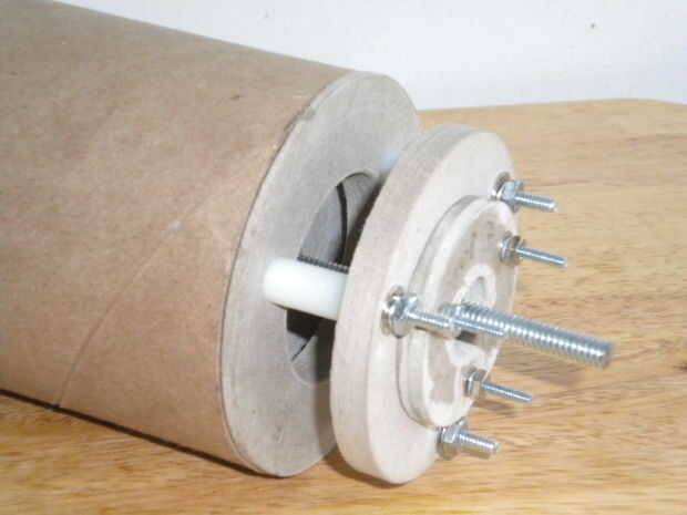 Punta de construcción: Si Deslice las placas de extremo interno de la cáscara, les cubra con una fina capa de pegamento, luego enrollar firmemente alrededor de la placa interna para aumentar el diámetro de cinta de papel. Corte cinta extra al ras con tijera. Lije ligeramente con papel de lija fina en seco. Repita el procedimiento hasta que soportes del rotor estén bien ajustadas.