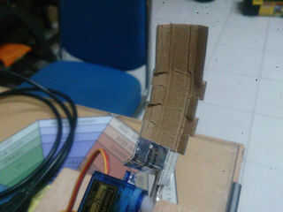 • Pegar la cartulina al cuerno del servo usando grapas o cinta adhesiva.
