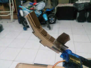 Al principio hago una palma muy simple que era una cartulina plana con un pequeño pliegue a sus lados. La idea era mantener la pelota en el tiempo de espera (listo para disparar). Más tarde lo actualizo a humanos-Palma-como con curva y un pulgar. Esta curva es que simula los dedos sujetando la pelota. Y cuando dispara, el balón seguirá la curva con el poder de alcance de nuestras manos.