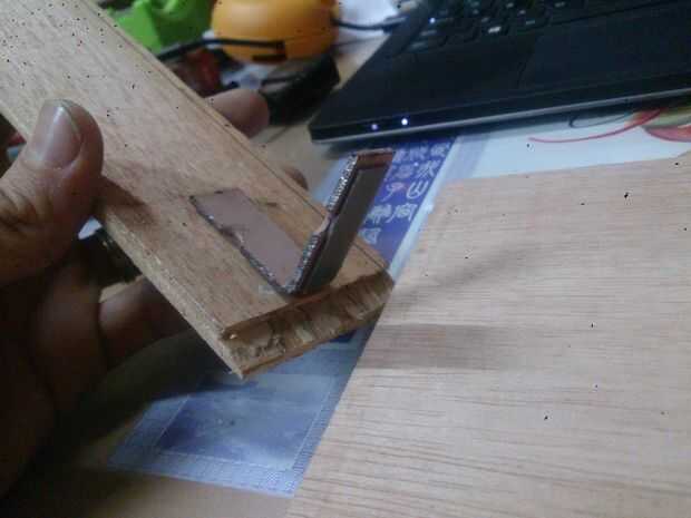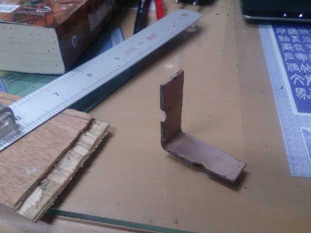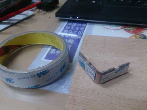 - Obtener una pieza de metal de forma de "L" a la entrada a la placa base. Era demasiado perezoso para perforar que simplemente utilizar doble cinta en las juntas.