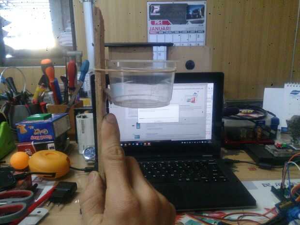 - Para el anillo, simplemente utilizo un envase de jalea sujetado al poste con una banda elástica. Puse un trozo de papel entre el lado de la taza de la jalea y el post, para hacer el anillo horizontal a la placa base.