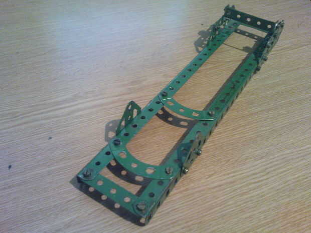 Este es un diseño simple, pero la parte difícil sólo es al final. Tenga cuidado de poner las tiras perforadas de la manera correcta en los muñones. Si están en el borde exterior la franja del medio ángulo doble no se sentará a las eclisas. También es importante la altura de la tira del ángulo doble. Los platos de pescado permitan el ajuste al montar el engranaje de gusano, así que usted puede ajustarlas más tarde.