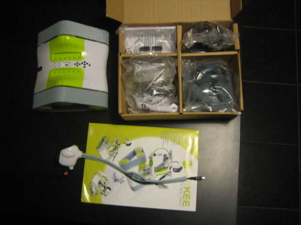 En primer lugar, al abrir la caja de empaquetado del robot Spykee, veremos que todas las partes bien embaladas en distintas capas de cajas corrugadas. Incluye un cuerpo principal base, "cabeza" de una página y "cuello", una caja de plástico, construcción de piezas y accesorios y una instrucción de montaje que se muestra en la figura 2. Un cargador de baterías y piezas de plástico para la construcción de robots parte superior del cuerpo están incluidas en el cuadro que se muestra en la figura 3.