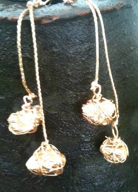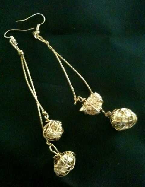 Primero Envuelva una vez con grueso cordón y formar un bucle... luego cortar el exceso y enrollar con el alambre fino. (ver fotos)