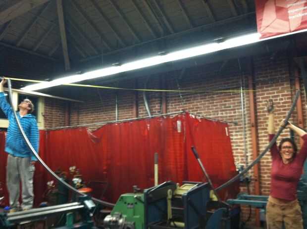 Utilice un rodillo de tubo para doblar los 2 tubos hasta que los extremos son 14' aparte.