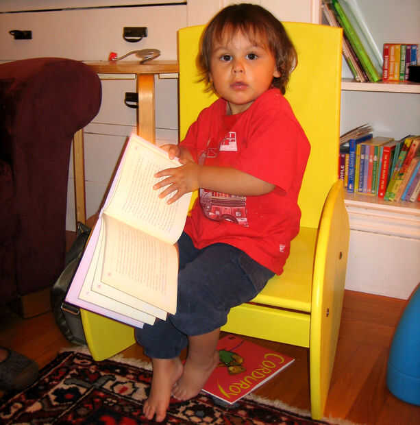 A few years a go we bought a nice old rocking chair at a flea-market. Tras el fregado de una capa muy vieja, gruesa y fea de pintura marrón, lijado y adición de fieltro a las patas le sirve es deber en la sala de estar. Cuando llegamos algunos otras