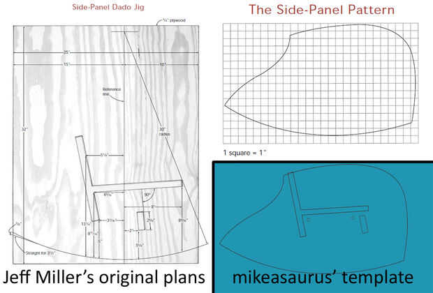 Le invitamos a calcular los ángulos a sí mismo, o puede utilizar los archivos que he proporcionado para imprimir a su propia plantilla. Mientras que el contorno del panel lateral puede escalarse desde la plantilla he proporcionado debe garantizar para que coincida con el grosor de su ranura con el espesor de su madera.