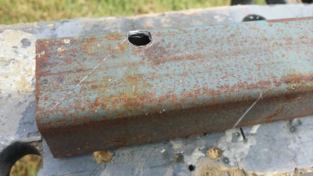 • Taladre el agujero de 12mm que será la conexión a la barra marco redonda de 12mm.