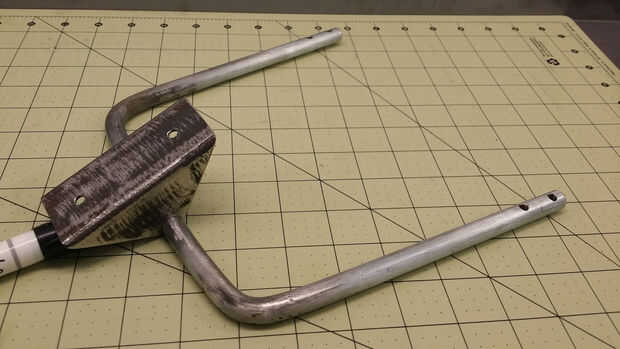 • Utilice un soplete de butano o acetileno de oxy para calentar la barra redonda para asegurar una curva de radio cerrado bien. Sugiero establecer una guía rápida para comprobar que el ángulo y los dos brazos son paralelos. Consulte el 14016-10 para las dimensiones.