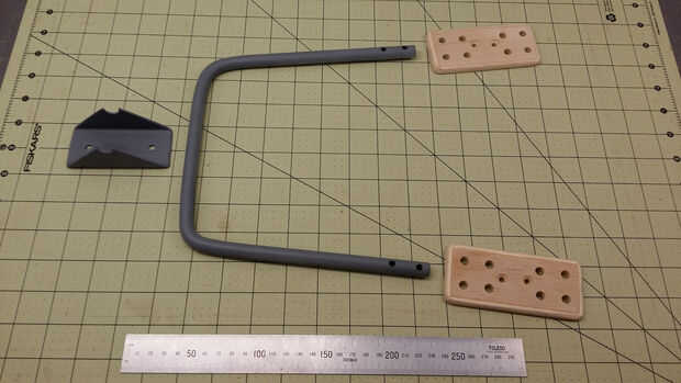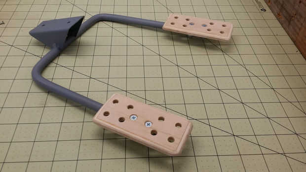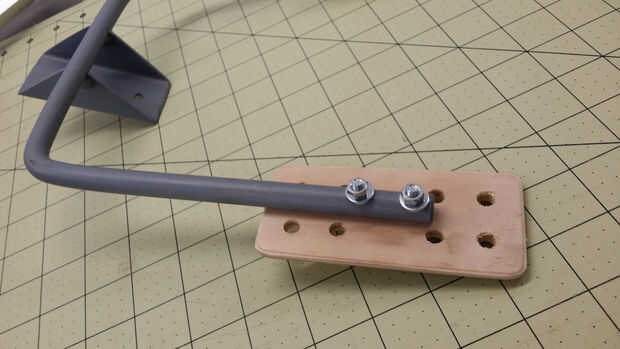 En retrospectiva o soldar un pequeño trozo de barra plana encima de la barra redonda bajo el reposapiés de madera o un piso encima de la barra redonda en el resto del pie para evitar que el resto de pie de madera sobre la barra redonda con desgaste con el tiempo la máquina. Creo que voy a ver como va.