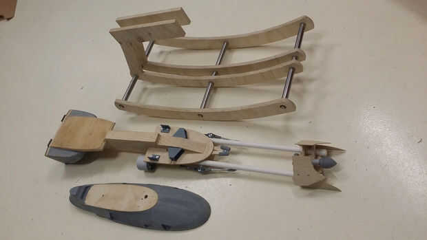Abrazadera de la columna vertebral de la madera a los brazos del eje de balancín y asegurar el eje de balancín está sentado y balanceo cómo quieres que antes de fijar en su lugar con M6 coche pernos como se muestra en el dibujo No.:14016 - 03.