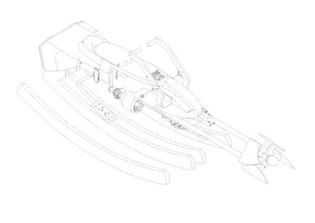 Veo el diseño en general como tres partes principales, en primer lugar el speeder bike su auto (el casco etc.); en segundo lugar el marco de los balancines y en tercer lugar la electrónica.