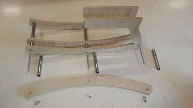 Los balancines son una madera muy fuerte 18mm espaciados con tubo de 32mm de acero inoxidable CHS y sujeta junto con barra de rosca M10, arandelas y tuercas cúpula.