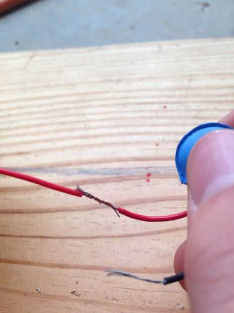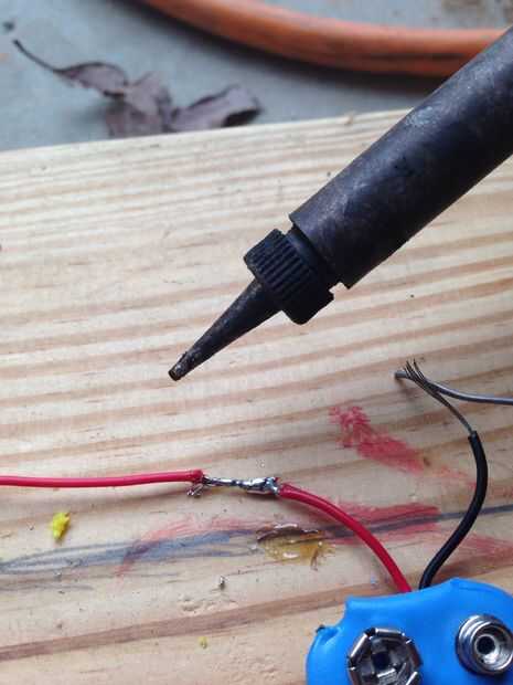 a continuación, tenemos que soldar los cables entre sí. Ahora, si eres un primer temporizador de soldadura, no te preocupes, causa voy mostrándole cada paso del proceso y realmente no es que duro, una vez usted consigue la caída de él... En primer lugar, los cables rojos y mantenga el 9v del conector de la recto, mientras bucle el alambre de la pistola alrededor de él varias veces. Luego presionan juntos, calentar el soldador y presiona el hierro al cable, mientras la soldadura de explotación entre los cables y el hierro. Una vez que se calienta, esa soldadura se derretirá y se funden los cables. Es así de fácil. Hacer esto para el cable negro, a continuación cubrir los cables expuestos con cinta aislante. ¡ Felicidades!, solo hackeado tu alimentación!