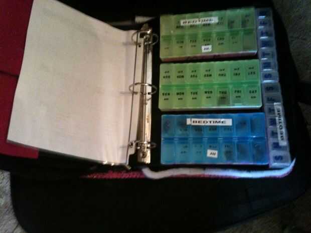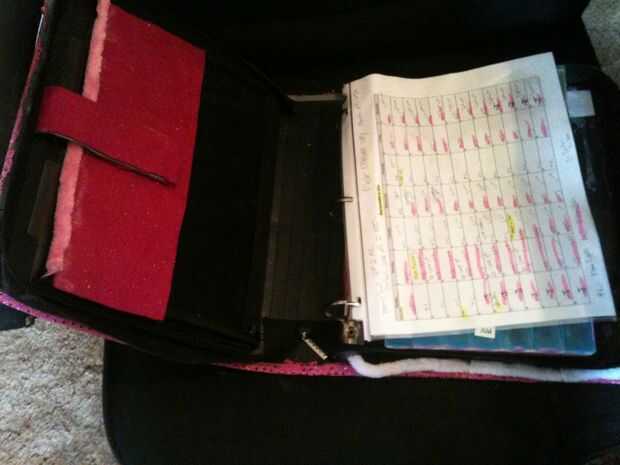 Eso es todo! El Med y totalizador de la nota está listo para rock & roll! Hay bolsillos para poner escuela flyers, tarjetas de seguros médicas, etc. así. Es un modelo fácil de adaptar a cualquier niño de intereses (este es en princesas y el rosa, obviamente), podría fácilmente tienen secciones para ejercicios de terapia, alimentación de las instrucciones y así sucesivamente, así.