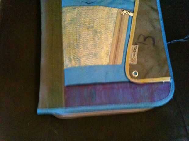 Una carpeta de 3 anillos con funda de cremallera y bolsillos que mi hijo de 13 años se hizo con (cubierto de graffiti, por supuesto)