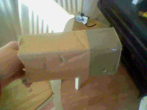 tomar un rectángulo peac de tarjeta y enrollo y cinta en el robosapen y un oubut rectángulo de smaler tan grande un dedo índice y rodillo esta va a ser el baroll para el canon de aremos