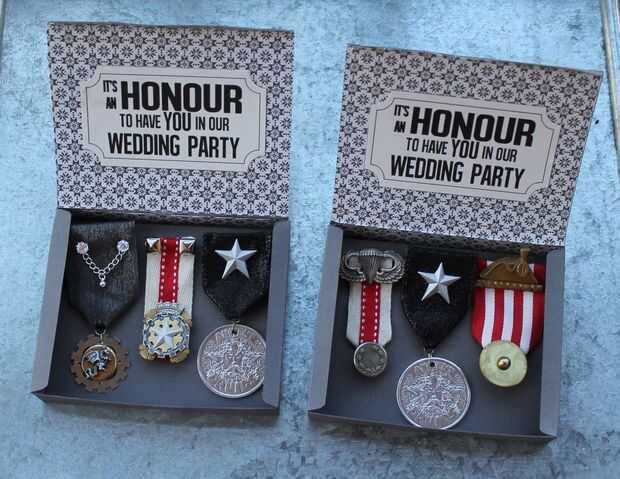 Hemos hecho estas medallas para todos los miembros de nuestra boda. Son una gran alternativa a los tradicionales Ramos o ramilletes de flores.
