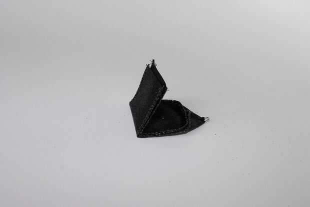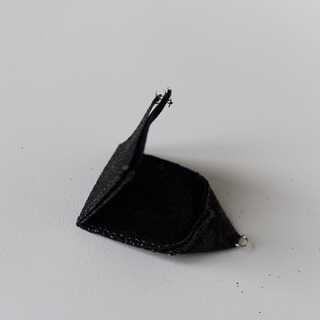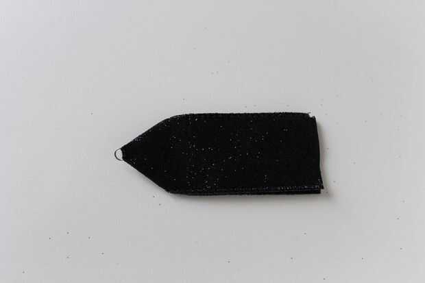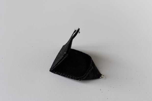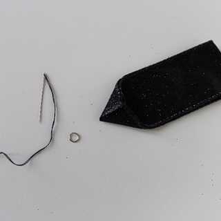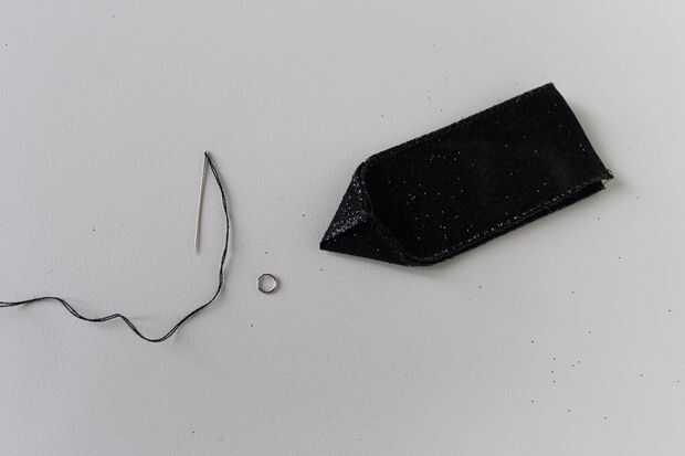 Coser un anillo del salto sobre la punta del punto y coser juntos las esquinas dobladas. Si no estás cómodo haciendo una pequeña mano que cose, pegamento caliente también funciona.