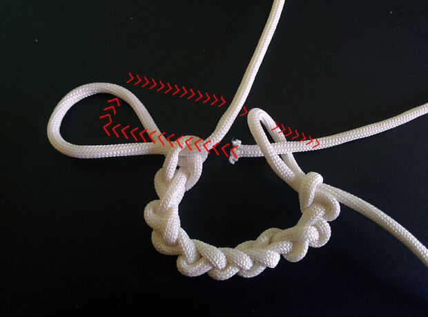 - Inserte el extremo derecho del cable dentro del bucle derecho, ajuste el cable para hacer lazo pequeña pero no demasiado apretado.