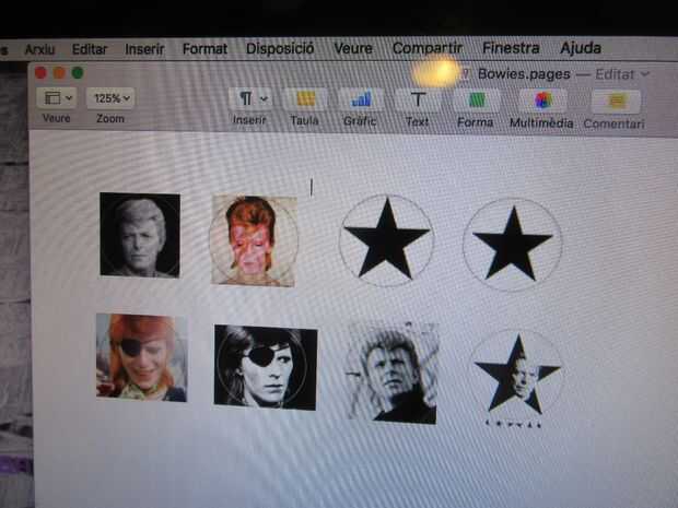 Mientras que la pintura se está secando, puede elegir fotos de Bowie unos en internet. Una vez que hayas elegido les, abrirlos en una programa de edición de imagen. He utilizado páginas en un Mac. Es fácil de usar y el resultado es perfecto.