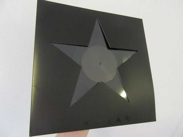 Hora de la estrella. Quería hacer un homenaje al último álbum de Bowie: Blackstar. Me encanta la versión de vinilo: una cubierta negra y una estrella de plástico transparente en el medio (de hecho, el plástico sí mismo es carpeta interna de vinilo). Así que pensé: ¿Cómo puedo hacerlo? Creo que finalmente encontré hacia fuera.