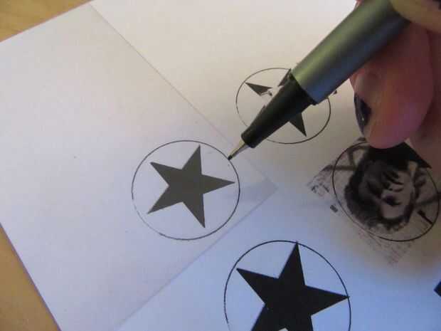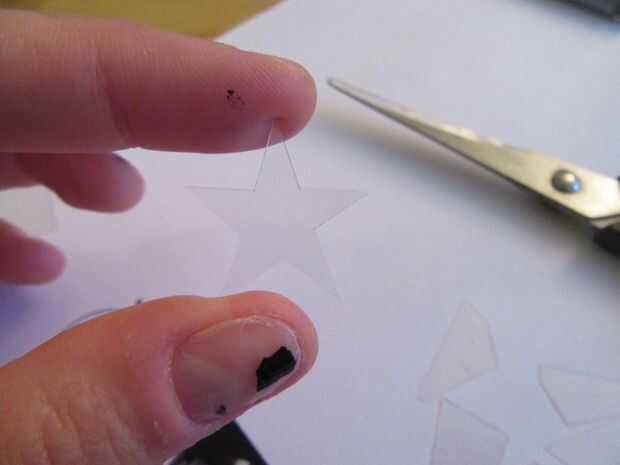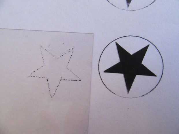 En primer lugar, imprima una estrella de cinco puntas. Luego tome un pedazo de plástico (puedo ser de un envoltorio, caja, etc.). Tomar la estrella y ponerla en el plástico y trazar con un rotulador.