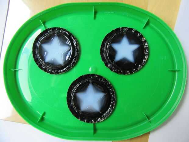 Tome el 3D mod podge o adhesivo transparente y cubrir la parte superior de la tapa con él. Luego, muy cuidadosamente coloque la estrella ha cortado en la parte superior se.