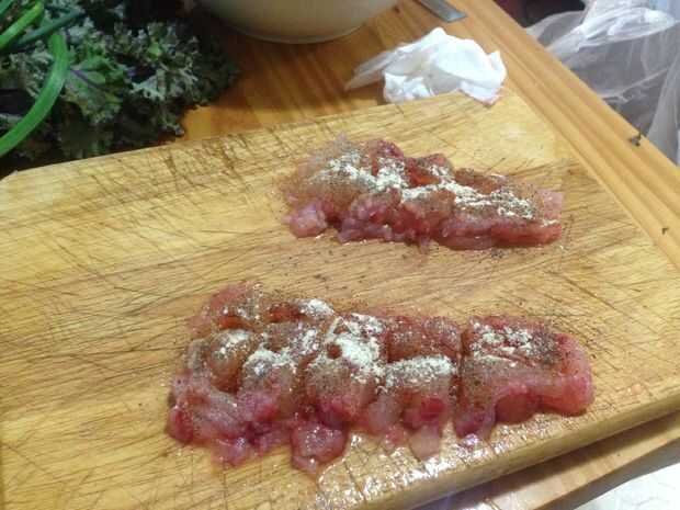 -sazonar los medallones (sal, pimienta, ajo en polvo, pimienta)