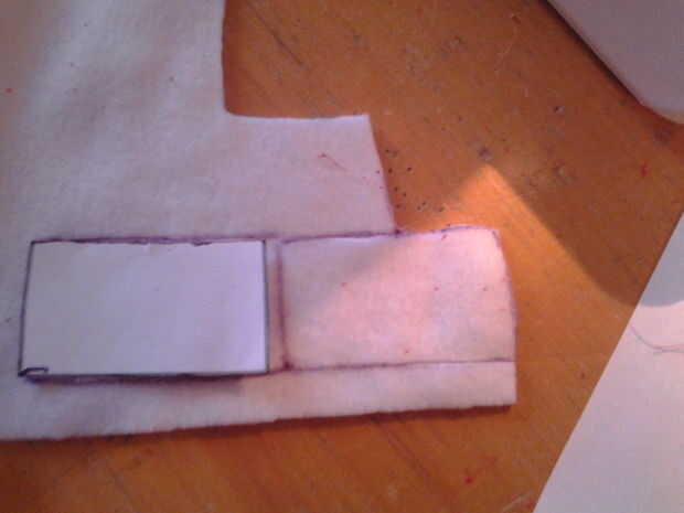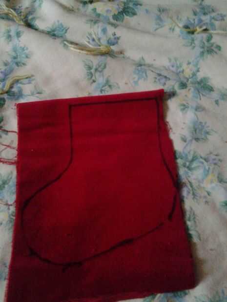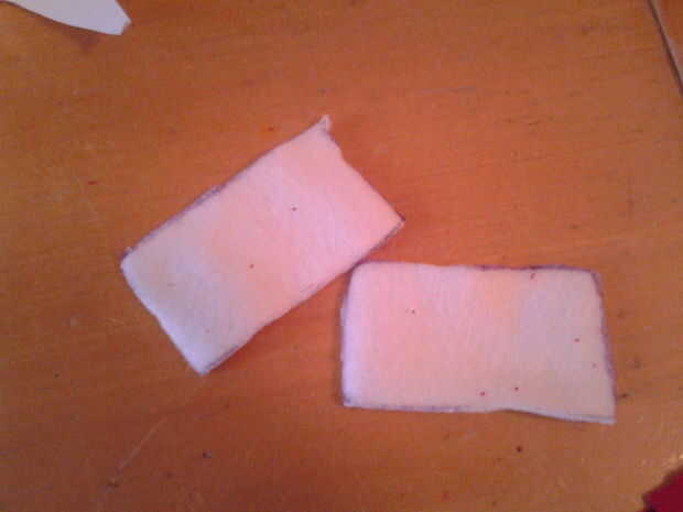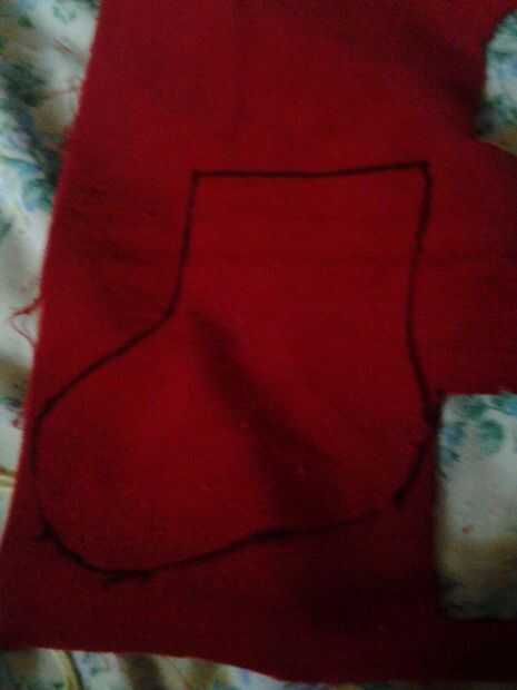 primero necesitas encontrar una imagen de media, entonces necesita cortar hacia fuera y cortar un puño de la media. entonces usted necesita rastrear el brazalete de tela blanca y luego cutt se. hacer dos luego tomar la otra pieza y se traza un paño rojo. hacer dos (traza una vez y luego doblar en halph y corte)