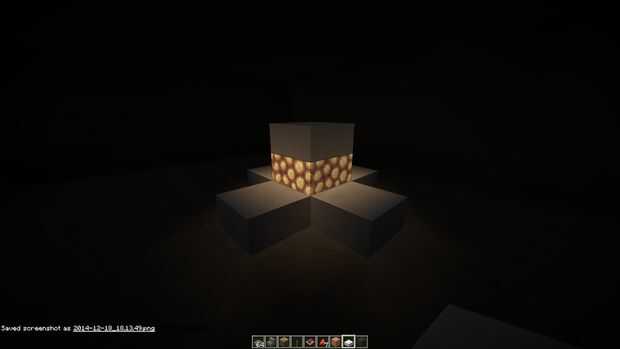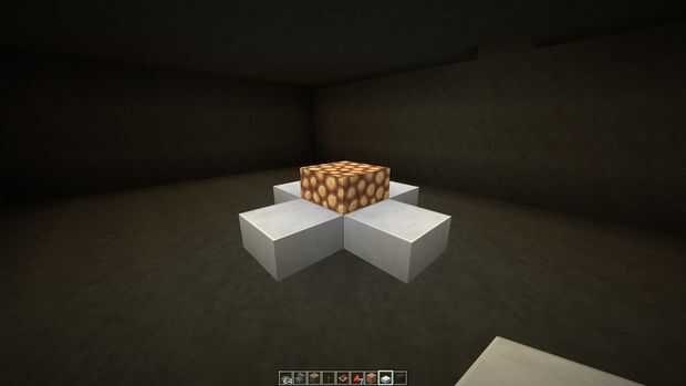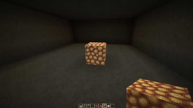 Al crear fuentes de luz, puede mostrar partes del bloque de fuente de luz utilizando bloques de medio (o losas como más comúnmente se les conoce). Para hacer esto, asegúrese de que la parte superior e inferior del bloque de fuente de luz toquen otro bloque para que la luz no escapa de esa cara. Luego, en cada cara, ya sea cubrir una cara con un bloque completo o una losa. Una vez que hay un bloque completo o losa en cada cara, te darás cuenta cómo la luz oscurece la sala a la mitad el brillo que lo iba a hacer un bloque de la fuente de luz normal.